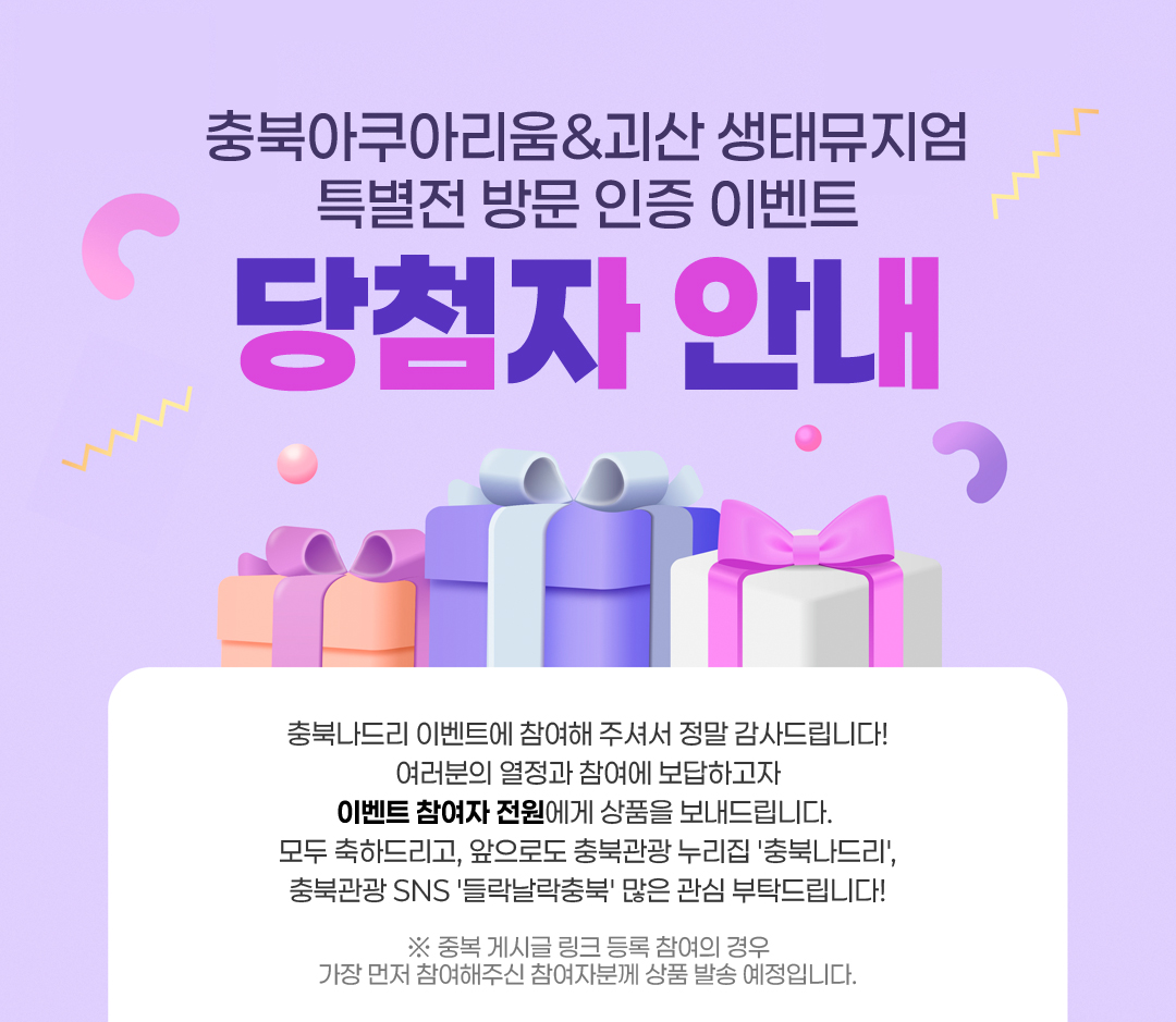 충북아쿠아리움&괴산 생태뮤지엄 특별전 방문 인증 이벤트 당첨자 안내